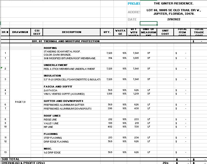 Our commercial roofing estimates meet all of your company’s needs. We provide complete estimations and the finest skilled installation to ensure our clients’ dependability, safety, and security. From basic repairs to waterproofing security, our commercial roofing estimators have addressed every stage, so you may focus on what influences outcomes the most. Our roof takeoff covers roofing repair, replacement, and maintenance; roofing materials installation, including wood, metal, and tiles; roof ventilation systems installation and repair; and business chimney cleaning, repair, and maintenance. We provide commercial roofing estimating services and have a great reputation. We highly appreciate client service and the ability to produce accurate, itemized development quotes.