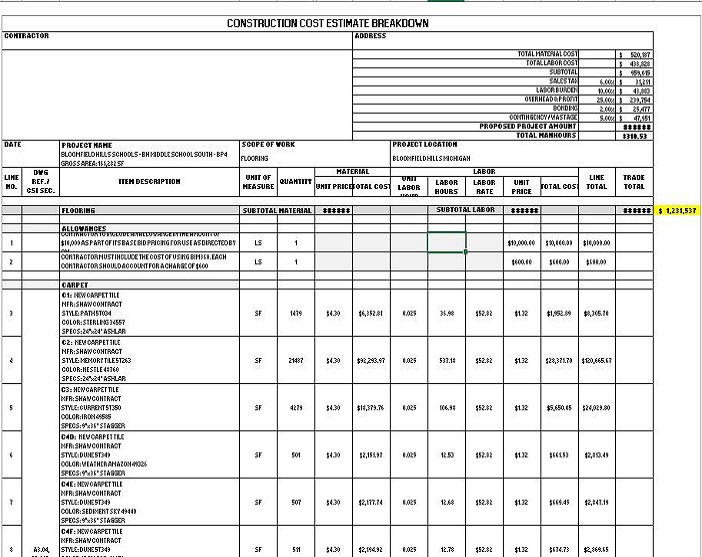 Furthermore, architectural cost estimate tools including Planswift or Bluebeam, among others, are useful for large commercial activities. Because you are a busy flooring builder or distributor, you may also consider outsourcing flooring forecast services to a competitive company like ours. The time you save can be used to focus on other parts of bid management or the distribution network.